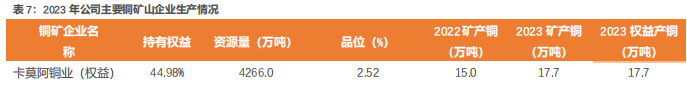 公司铜板块未来主要的增量项目包括: