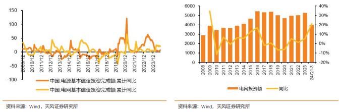 电力是国内铜下游第一大应用领域,电网投资对铜需求形成托底。电力行业消费铜主要包括发电端、输变电和配电等领域,以电线电缆用铜最多。2023年国家电网基本建设投资完成额5275亿元,同比+5.3%,2024年前三季度完成额达3982亿元,同比+21.1%,实现大幅增长。十四五期间电网投资将维持高位,对铜需求形成托底作用。