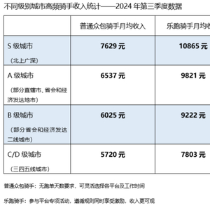 在财报电话会上,美团还详细披露了骑手的收入区间。今年三季度,全国范围内高频骑手的月均收入在5720元至10865元之间。其中,高线城市骑手月均收入区间为7629元至10865元,低线城市骑手月均收入区间为5720元至7803元。高频骑手指当月接单在22天及以上、日均接单时长在6小时及以上的骑手。
