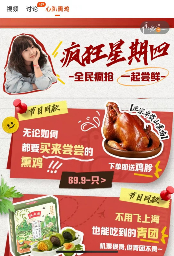 节目在各社交平台掀起泼天流量。数据显示,微博,节目第七期上线后,仅主话题的阅读量已近2亿;抖音的相关合集播放量39.9亿;B站上,影视区、生活区、娱乐区的UP主们围绕这档综艺实现“团建”;微信端,10万+的爆款推文层出不穷;小红书用户调侃其为“离婚界春晚”等等。在天猫,某品牌旗舰店打出“再见爱人麦麦熏鸡”的字样爆火。“卓资熏鸡”销量增长了大致100倍,原来一天可能买几十、几百只熏鸡,现在每天已经能卖上千只。客服的推荐语也很“麦学”,“希望它的味道能在您的心趴上”。