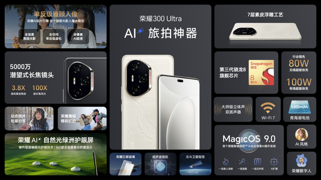 性能方面,荣耀300系列展现了强大的实力。荣耀300 Pro/Ultra采用了第三代骁龙8旗舰处理器,而荣耀300则搭载第三代骁龙7处理器。通过深度优化,无论是游戏操控还是日常应用,荣耀300系列都变现卓越。同时,配备的全域冷驱散热系统确保了手机即使高强度使用也能保持最佳状态。