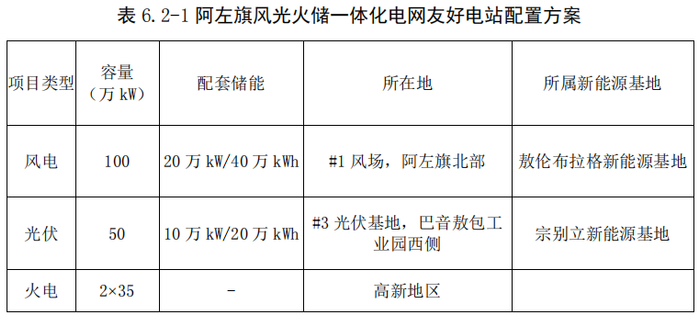 “十四五”期间在阿左旗建设100万千瓦风电、50万千瓦光伏、30万千瓦储能(2小时放电时长)(即储能300MW/600MWh)、2×35万千瓦灵活热电,可向主网提供100万千瓦稳定供电,不增加系统消纳压力。