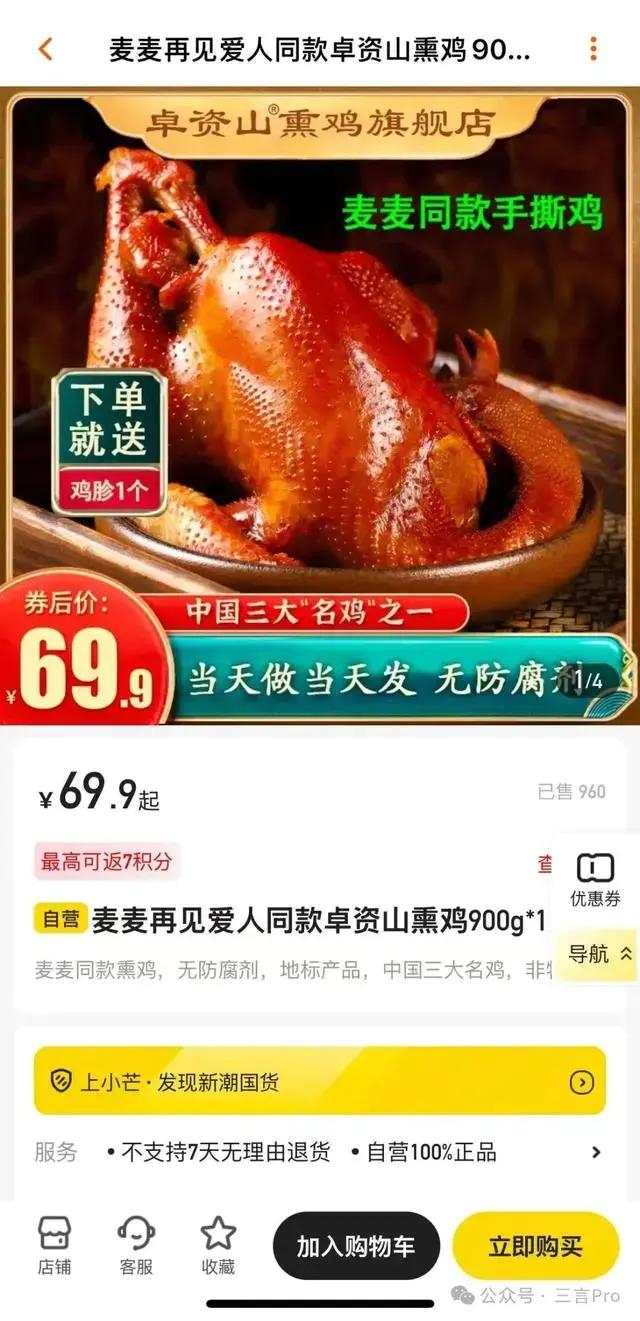 节目在各社交平台掀起泼天流量。数据显示,微博,节目第七期上线后,仅主话题的阅读量已近2亿;抖音的相关合集播放量39.9亿;B站上,影视区、生活区、娱乐区的UP主们围绕这档综艺实现“团建”;微信端,10万+的爆款推文层出不穷;小红书用户调侃其为“离婚界春晚”等等。在天猫,某品牌旗舰店打出“再见爱人麦麦熏鸡”的字样爆火。“卓资熏鸡”销量增长了大致100倍,原来一天可能买几十、几百只熏鸡,现在每天已经能卖上千只。客服的推荐语也很“麦学”,“希望它的味道能在您的心趴上”。