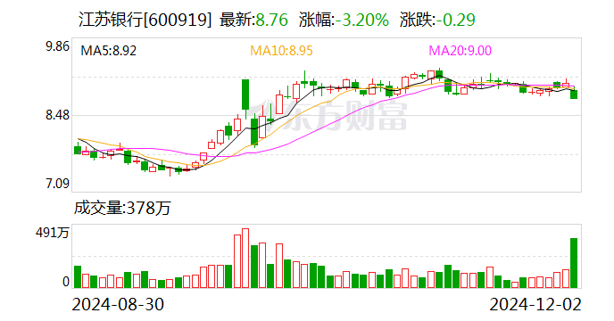 江苏银行发布2024中期利润分配方案 每10股派3.062元