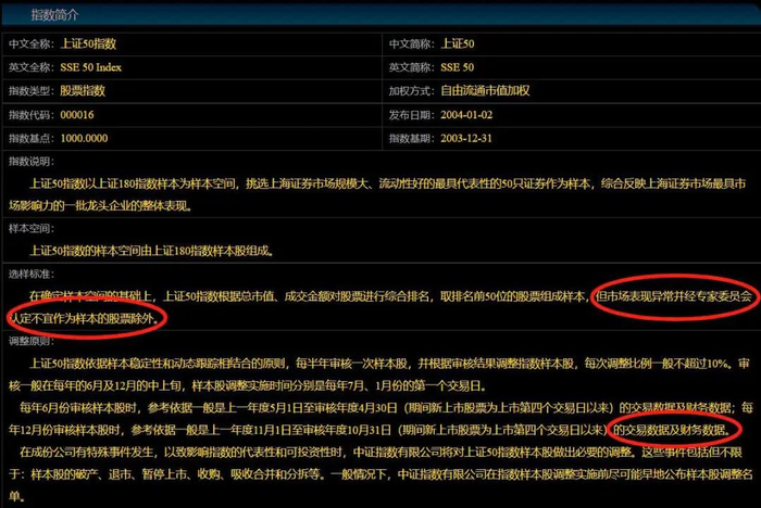 其实,熟悉A股的投资者都知道上证50还有一段“黑料”。当年,信威集团曾经巅峰时期市值超2000亿元,被调入上证50的成份股。后面因为财务造假被调查,2016年停牌之后,就从上证50成分股中被剔除。2年多后信威集团复牌,直接42个一字跌停...