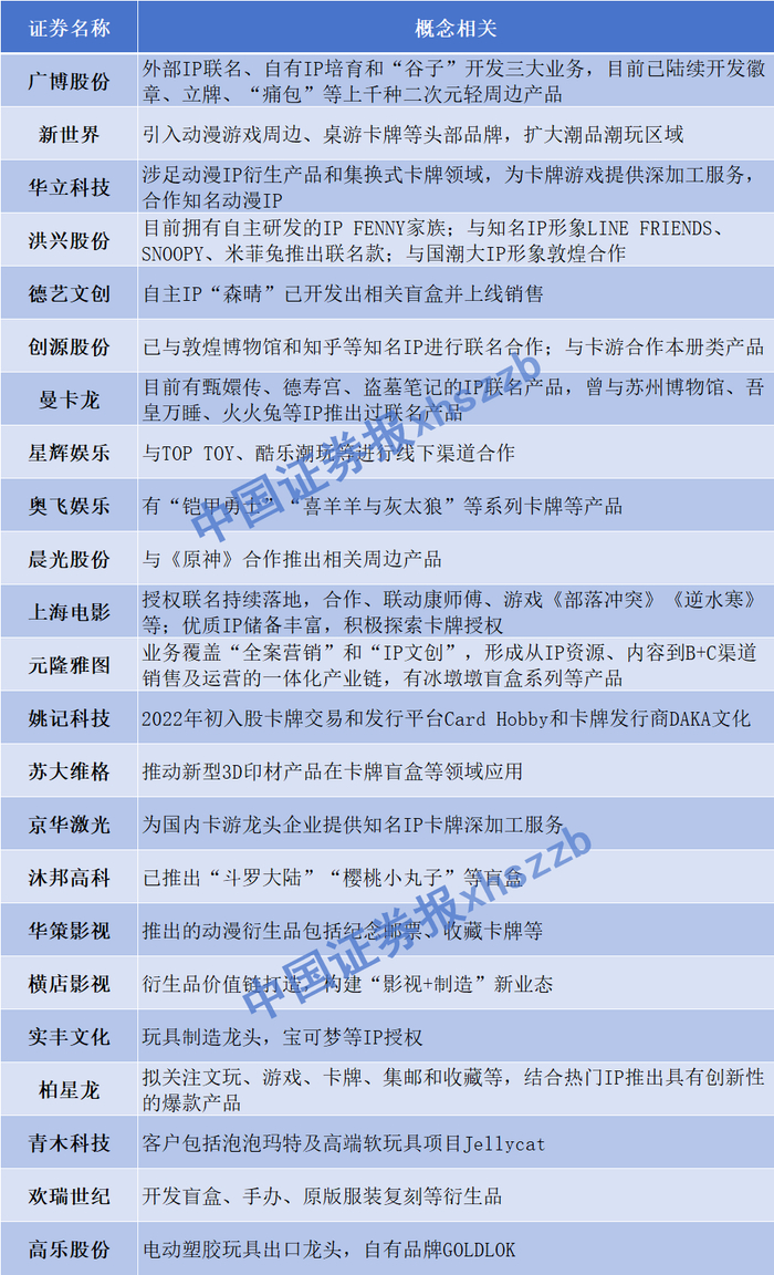 浙商证券研报表示,当前“谷子经济”处在拼渠道的阶段,拥有广泛零售渠道的公司或品牌有望在初期阶段享受行业贝塔。中长期来看,核心竞争力将回归产品开发及选品能力,最终落脚到差异化的产品供给。关注上中游运营公司、下游零售商。高知名度的连锁“谷子”店普遍依托上游IP资源,成长迅速、爆发力强,处在加速开店阶段。