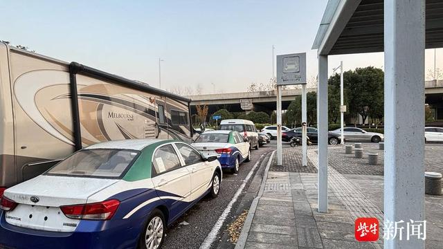 12月2日下午,因为公共交通不便,记者驱车来到了高铁仙林站,从河西出发,大约35分钟可到达,路途很便利。停车场就位于站前广场东侧,虽然车站鲜有乘客,但这里却是车停得满满当当,还有三车并排停放的情况。除此之外,规划配套的出租车和公交车的候客区、站前辅道都成了周边住户免费停车场,甚至还有不少无牌车辆堆放场在此。