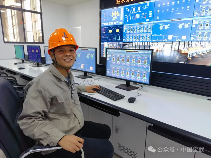 刘阿朋在电池级四氧化三锰车间中控室