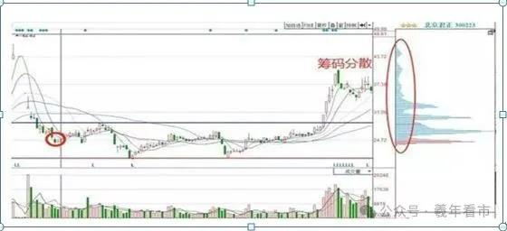 筹码分散:经过一波下跌,筹码会分散到各个价位。