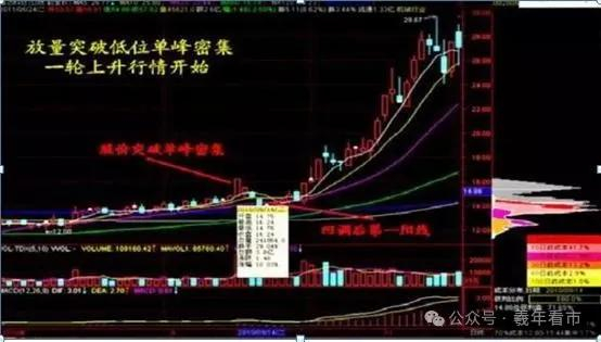 3、股价向上突破单峰密集区后,是中短线波段买入时机。
