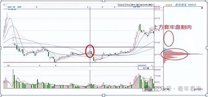 上方套牢盘割肉:上方套牢盘与新进资金换手达到筹码交换,也就是主力吸筹阶段。