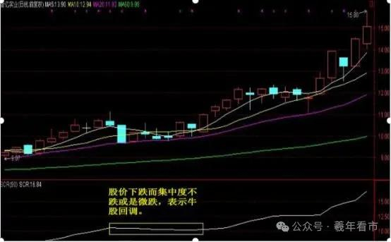 4、股价下跌而集中度不跌或是微跌,表示牛股回调,集中度快速下降,意味着筹码分散。股价下跌而集中度不跌(基本是横盘)后面往往有机会。