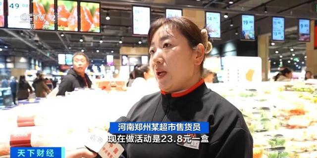 河南郑州某超市售货员:半斤装的隋珠草莓现在做活动是23.8元一盒,价格略偏高,12月10日之后价格会大幅度下降。
