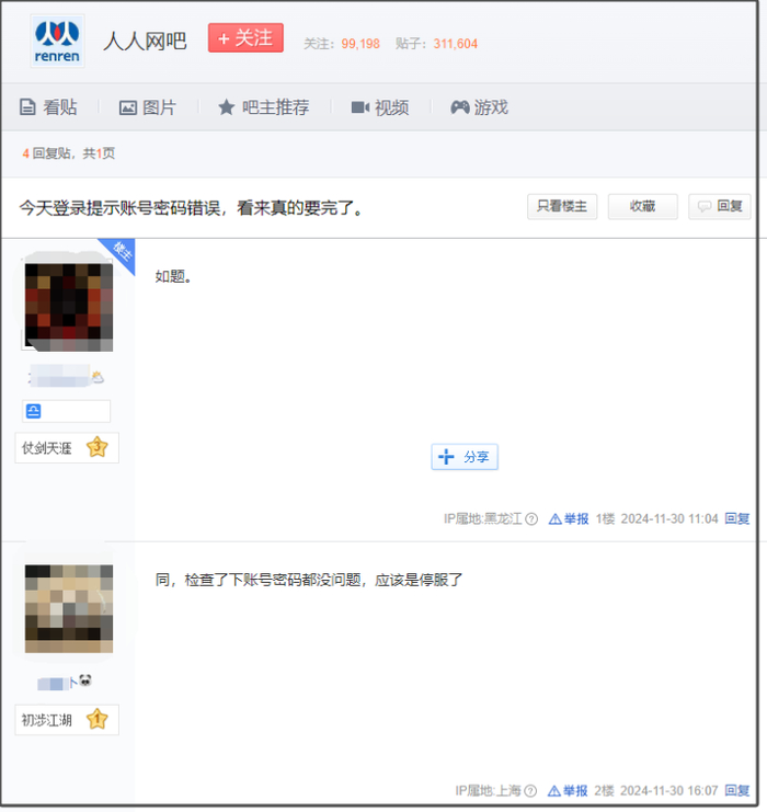 12月2日,人人网官方客服表示,人人网已停止服务,后续恢复时间未知。