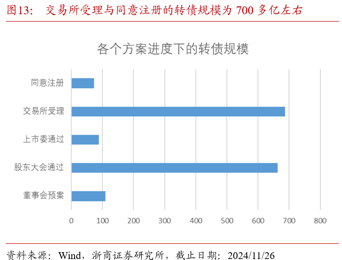 如前文所述,随着无风险利率下行、风险偏好提升,我们预计2025年上半年有望分母先行,下半年分子有望跟上。结构性行情下,从DDM模型出发,转债个券的超额收益有望从三个方面出现:1)短期基本面盈利确定改善:公用事业板块、消费补贴预期利好下的家电板块;2)远期市场无风险利率下行:以人形机器人、低空经济等为代表的新质生产力相关板块;3)短期市场风险偏好提升:政策支持下重组、自主可控等相关的板块。