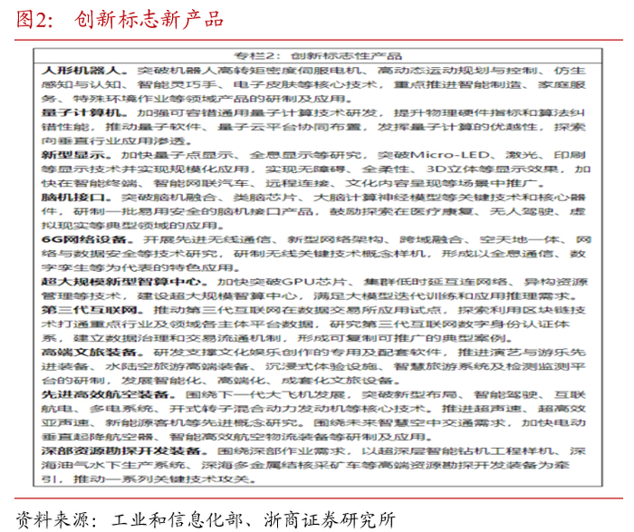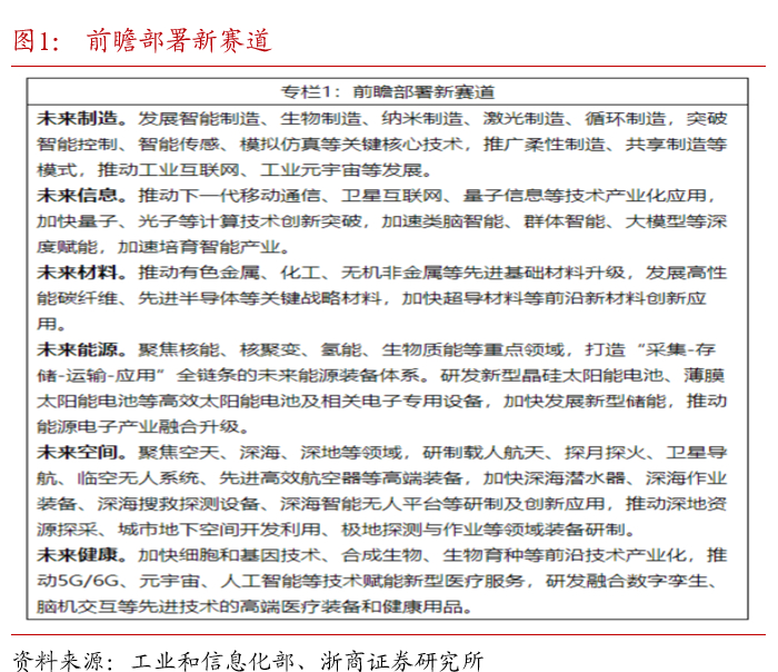 未来产业有望在哪些行业布局?据《工业和信息化部等七部门关于推动未来产业创新发展的实施意见》显示,我们总结出未来产业所指的发展方向,从行业板块来看,重点领域涵盖:(1)科技板块:人工智能、物联网、6G、超大规模集成电路;(2)制造板块:智能网联汽车、低空经济、机器人、航空装备、新材料制造、智能制造、循环经济;(3)能源板块:氢能、核能、新能源开发、储能技术;(4)医疗板块:高端医疗设备、智能医疗技术。