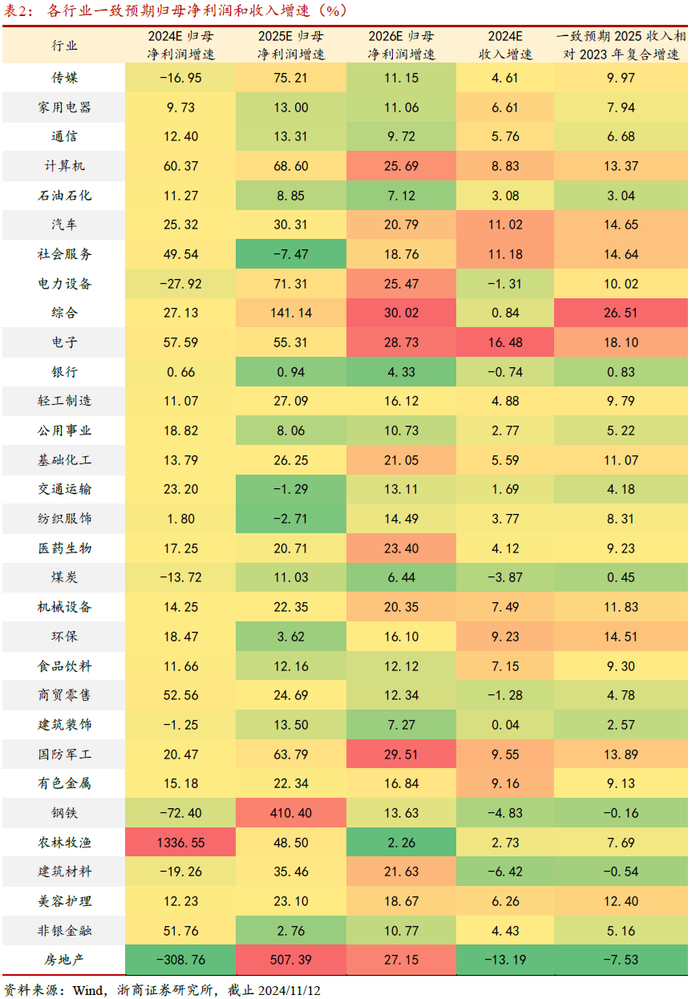 行业维度来看,我们预计大部分行业的收入、利润增速在2025年环比2024年均有所上升。