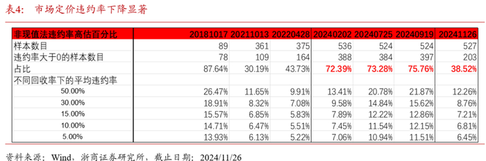 2024年可转债市场集中定价信用风险。截止到11月26日,违约率大于0的转债占比降至40%以下,平均违约率显著下降。历史上,跌破债底后通常是买入良机,因此当前的信用风险定价可能是市场错杀的信号。展望2025年,上半年将有约100~200亿可转债到期,市场可能继续定价信用风险。对于剩余期限超过2年的转债,若被定价违约概率,通常是买入的好时机。