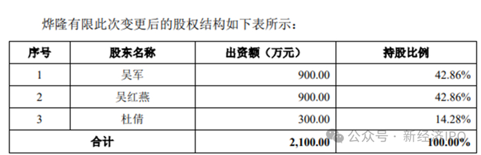 招股书称,新股东杜倩为实际控制人好友。值得注意的是,杜倩时任无锡市惠山区财政局科员,身份非常特殊;而且,杜倩入股无锡烨隆分文未出,300万元出资款实际来自吴红燕的借款。半年之后,即2009 年 11 月,杜倩将其持有的烨隆有限 14.28%的股权(对应 300 万元出资额)转让给吴红燕。