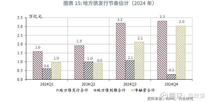 专项债方面,第二、三季度净融资规模较高,约为2.1万亿元、2.0万亿元。由于新增专项债与化债再融资专项债发行节奏可能有所差异,因而分别进行估计。