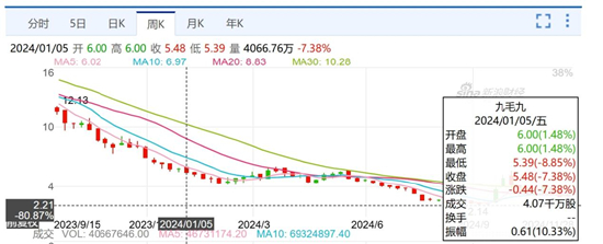 低走的股价也反映出九毛九的现状,截至昨日,九毛九报3.52港元,今年股价下跌已超过四成。