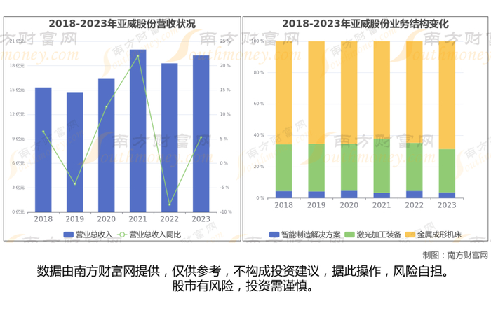 亚威股份于2011年3月3日在深圳证券交易所上市,公司主营业务为主要业务包括金属成形机床业务、激光加工装备业务、智能制造解决方案业务。
