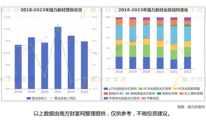 强力新材于2015年3月24日在深圳证券交易所上市,公司主营业务为从事电子材料领域各类光刻胶专用电子化学品和绿色光固化材料的研发、生产和销售及相关贸易业务。