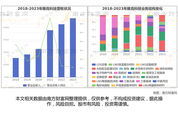 雅克科技于2010年5月25日在深圳证券交易所上市,公司主营业务为电子材料业务、LNG 保温绝热板材相关业务和阻燃剂业务。