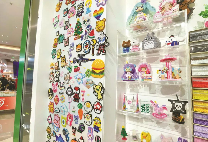 记者在几家“手作店”随机采访了一些正在制作“拼豆”的市民。一位妈妈告诉记者,原本店里的年卡是给孩子办的,但看着好玩也就一起跟着做了,不到70元,娘俩能打发一下午的时间。“放下手机,跟孩子专心干一件事情还是很有意思的。”