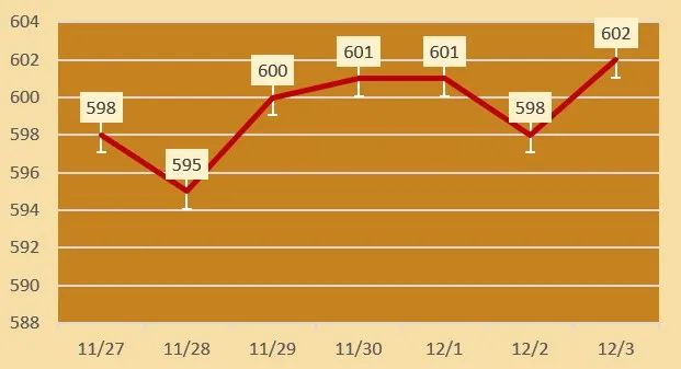 今日黄金回收价格每克602元,铂金回收价格每克197元,钯金回收价格每克197元,18K金回收价格每克429元,白银回收价格每克5元。(黄金行情是波动的,以结算价格为准。)