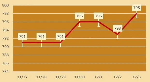 | 老凤祥 | 黄金价格 | 798元/克 | 涨6 |