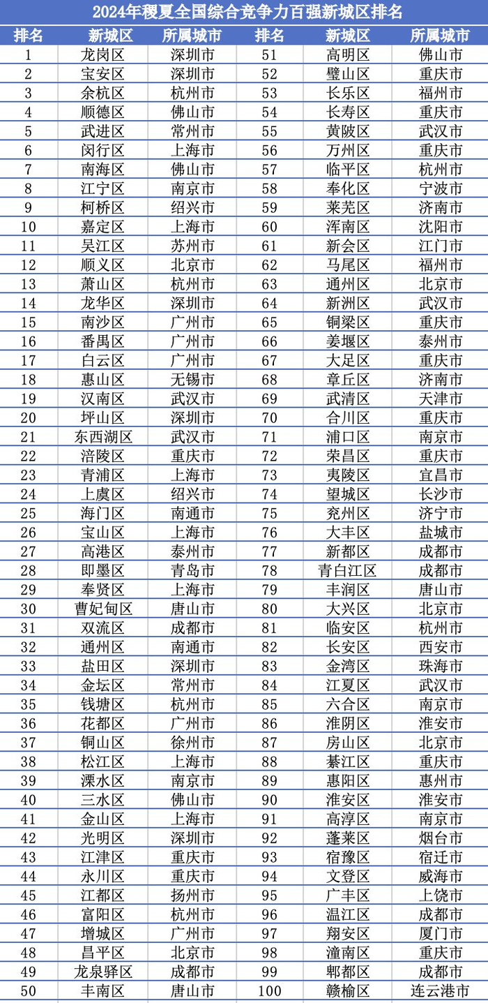 2024年全国综合竞争力百强区榜单发布:上海城区排名回升,深圳这一指标反超杭州