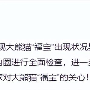 中国大熊猫保护研究中心回应“‘福宝’出现状况异常”:正密切观察其状况,计划将其收回内圈进行全面检查