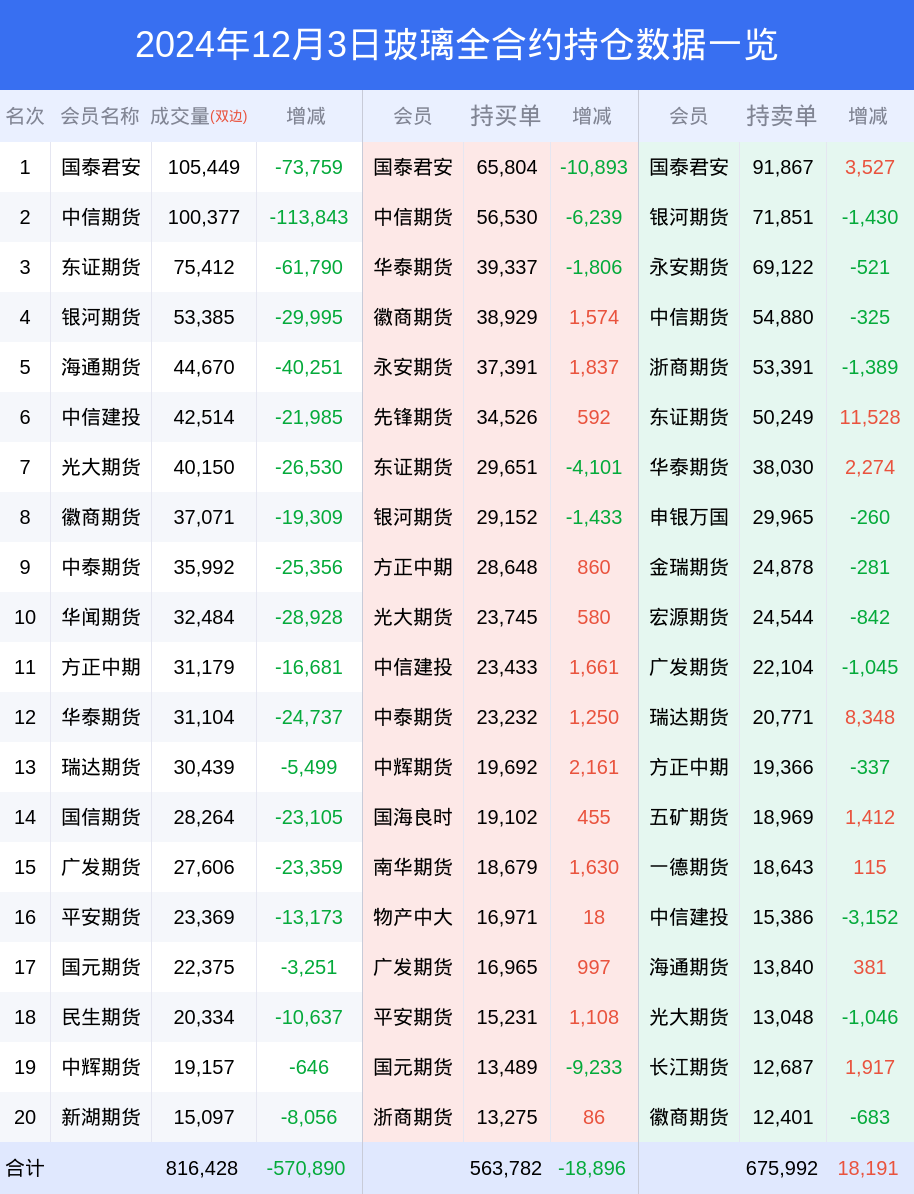 玻璃期货全合约总计成交71.69万手,比上一日减少54.08万手。全合约前20席位多头持仓63.52万手,比上一日减少1.34万手。全合约前20席位空头持仓74.27万手,比上一日增加1.38万手。