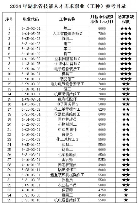 今年11月,湖北省人社厅发布的《2024年湖北省技能人才需求职业(工种)参考目录》显示,人工智能训练师是急需紧缺的职业之一,月薪中位数参考值7800元。