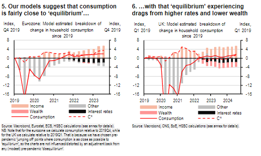 利率方面,我们估算认为,自2021年底以来的加息已经使欧洲家庭储蓄率提升了2个百分点;