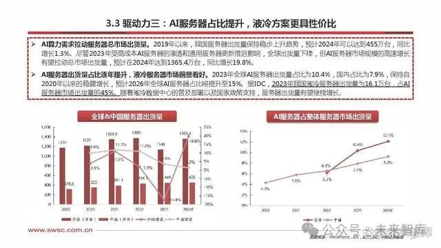 驱动力三:AI服务器占比提升,液冷方案更具性价比