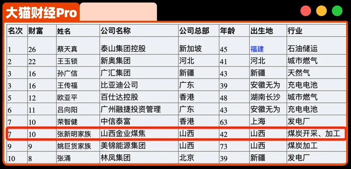 到2005年,胡润能源富豪榜,张新明成为山西首富,之后几年,他也是富豪榜常客。