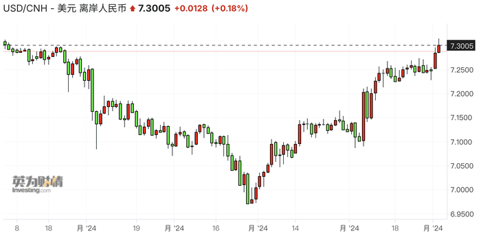 近期,海外扰动不断,欧元、英镑、日元等非美货币下挫。12月3日,离岸人民币对美元跌破7.3,截至当日12:45报7.3017。