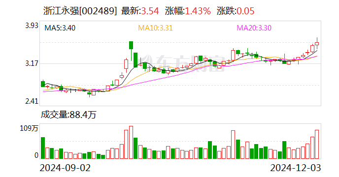 2024年前三季度,浙江永强实现收入32.97亿元,归母净利润4.87亿元。