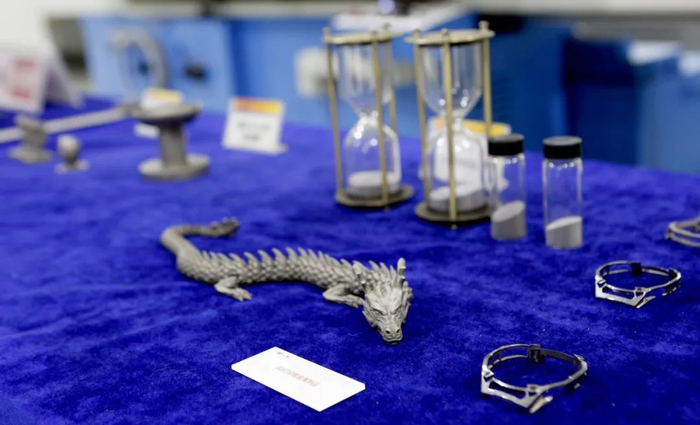 在东方智造记者看到,3D打印机一字排开,在技术人员操作下,设备正有条不紊地打印着铌钨合金相关样品,一旁展出的成品个个极为精巧;而人体植入多孔产品、艺术产品、航天航空耐高温部件等产品则分别采用钽球形粉、铌球形粉、钽钨合金粉等通过激光3D打印而成。