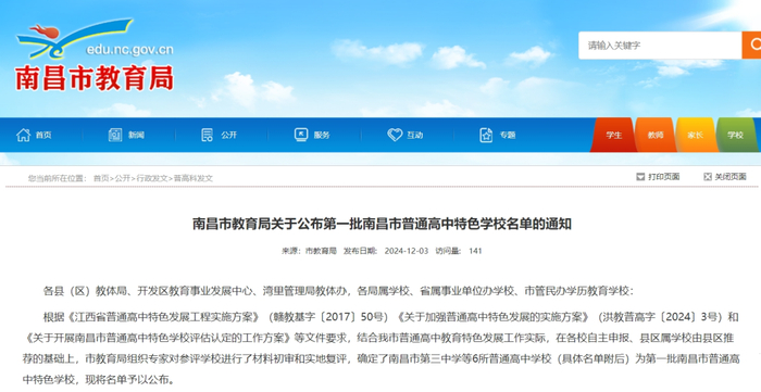 来源:南昌市教育局官网