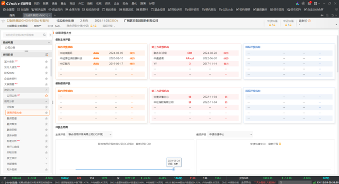 Choice 金融终端是东方财富旗下专业的金融数据服务平台。在这里,您可以通过债券F9深度资料功能,一键探索主体3C评级最新结果和历史评级数据。