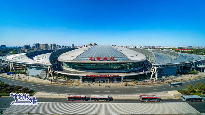 北京南站位于北京市丰台区,是中国首座高标准现代化的大型综合交通枢纽,是京津城际铁路和京沪高铁的起点站。目前,北京南站始发列车的运行方向主要有上海、厦门、合肥、青岛、天津等。