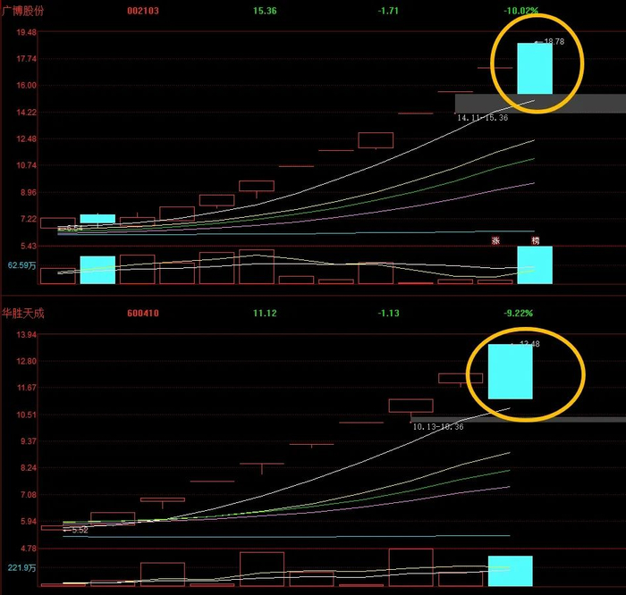 早盘广博股份爆量还被超顶,利欧股份盘中炸板已经给出了风险信号,万事利作为创业板高标也是吹哨人。