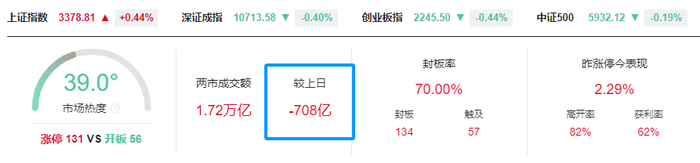 跌幅方面,转基因、粮食种植等农业股走低,康农种业跌超9%;电商、家电等部分大消费板块表现较弱,星徽股份跌超10%;5G、AI手机、光模块、量子科技、机场航运、医药商业等板块纷纷下挫,广博股份、华胜天成等多只高位股人气股尾盘炸板。