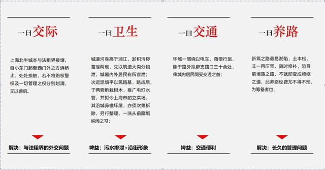 拆城填濠工程未动先谋,提前考虑四项侧重点:第一是交际,打通华界和租界,可解决与租界的市场流通问题。第二是卫生,解决排污排水,推广电灯水管,打造沿街形象。第三是交通,进行干支路与路口的开辟。第四是养路,要寻得后续养路经费的出处。
