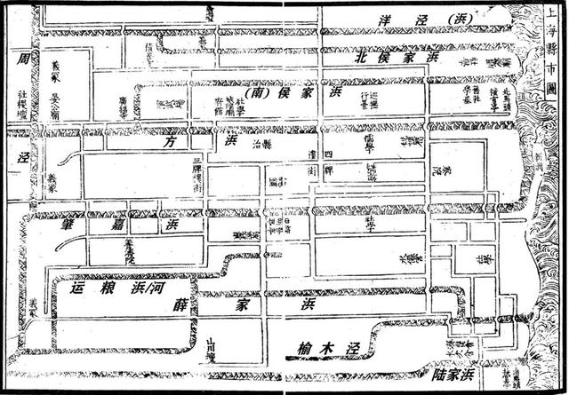 由公元1524年绘刊的明嘉靖《上海县市图》可定性证明,城内路网分布格局由来已久,最迟在16世纪初,这片区域已然有江南水乡的大型市镇聚落的生成。