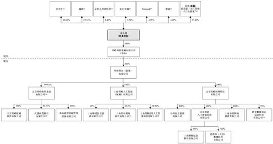 股权方面,吴明辉,通过MineMineInternational持有全部B类股份,占总股份约11.32%,推算约占56.08%的投票权。此外,吴明辉还控制珠海横琴明略万象、iTopLimited所持约1989393股A类股份(占总股份约1.52%)的投票权,推算合共拥有56.83%的投票权。腾讯通过意象架构等实体,合计持股约26.96%;金拓博来、金拓二期、资阳明拓、金拓香港、深圳航景一致行动,合共持股约8.55%;红杉中国,持股7.46%;淡马锡Temasek,持股约4.14%。