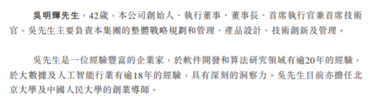 吴明辉先生,42岁,公司创始人、执行董事、董事长、首席执行官兼首席技术官。
